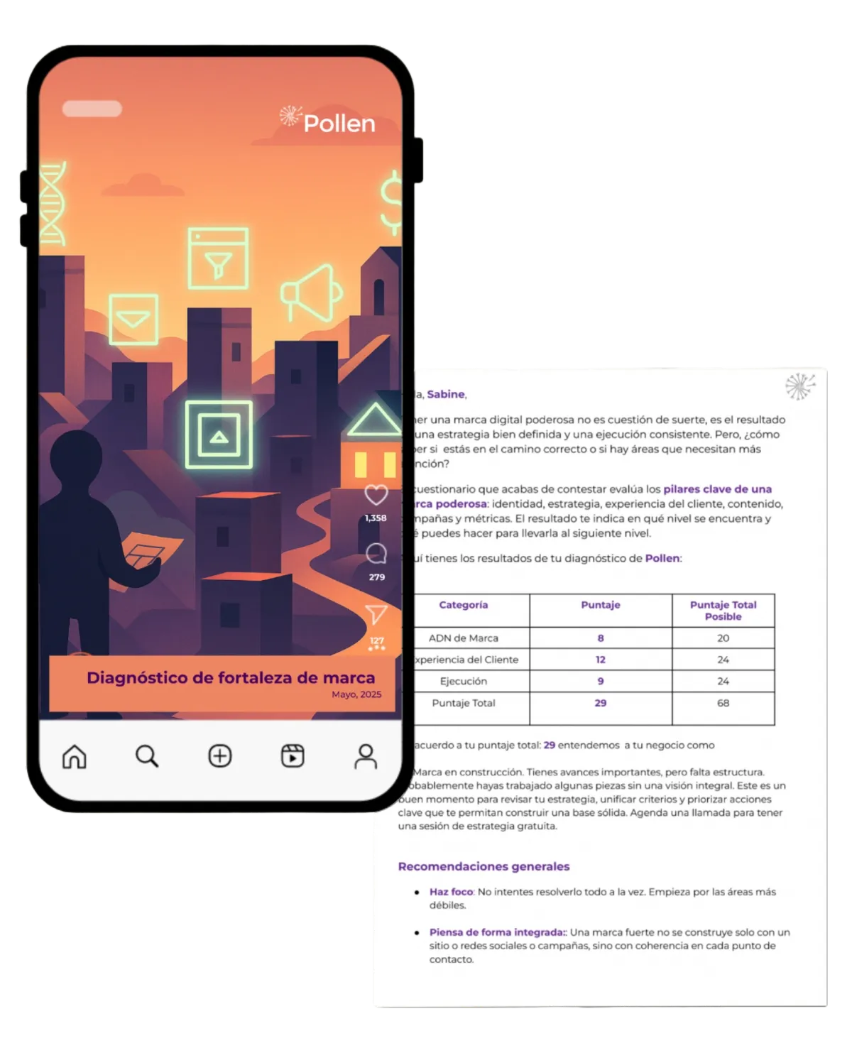 Completa el cuestionario y recibe un diagnóstico personalizado y una ruta para tener una marca poderosa.